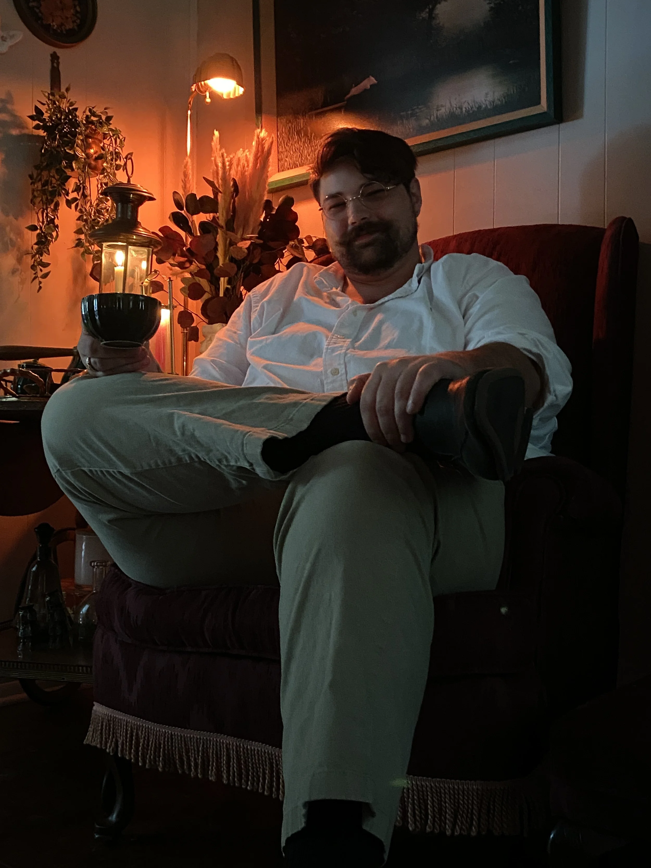 As a person I am a soft-spoken, queer, gentle giant with a plethora of interests beyond tattooing and art. I love antiques, history, gardening, cooking, penmanship, interior design, cinema, mental health, community, teaching, and many more! Basically I’m a nerd who’s always educating himself and will talk your ear off if I’m prompted.